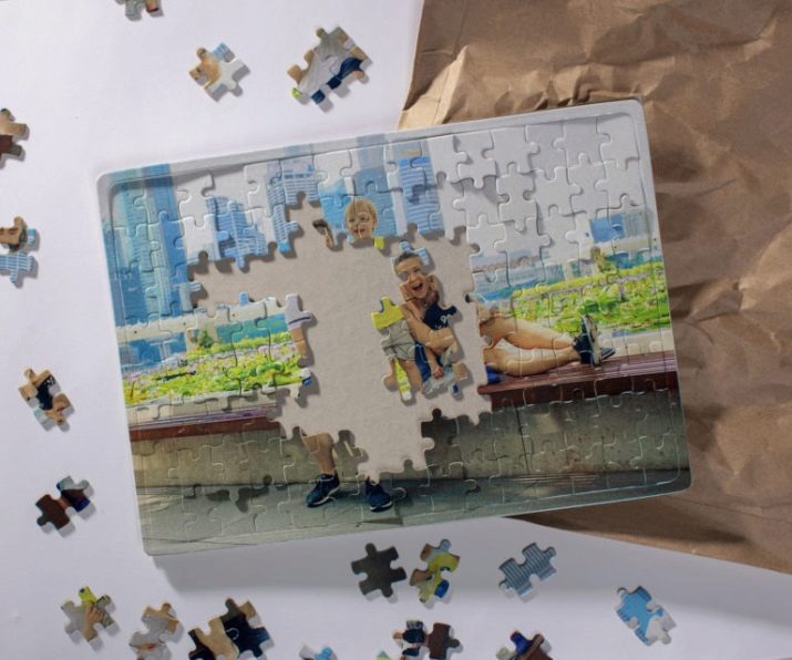 Fer un regal així és força senzill.Necessitareu la vostra foto preferida de gran format, cartró gruixut, cola, tisores. La mida i la forma dels elements del trencaclosques depenen només de la vostra imaginació i perseverança. Aquests poden ser parts més grans o més petites, rectes o elements arrissats.