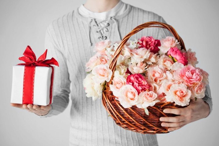- per a dones - una tassa de cafè amb platillo, un mirall amb un bonic emmarcat, una planta viva en una olla o ram, un conjunt de taques de cuina, una caixa de bombons, un mocador o una estola, un fermall, un conjunt de manicura, un diari diari, una làmpada d’aromes, un conjunt de gots, un gerro de flors, una petita cistella de fruites , caixa amb coques, coixí sofà, plat de pastissos, marc fotogràfic, caixa decorativa;
