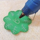 Si voleu crear més fulles, utilitzeu un material d’una tonalitat diferent per donar més realisme a la composició global. Per crear el centre de la flor, podeu utilitzar cola i un gran gran.