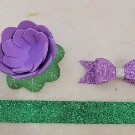 Per crear un arranjament floral, heu de crear prèviament patrons mitjançant cartró. Segons aquest patró, heu de retallar una imatge floral del foamiran de purpurina, i després donar-li un volum a la composició (això es pot fer amb l'ajuda de dispositius de calefacció: assecador o planxa). També necessitareu un filferro, que servirà de tija per a la flor.