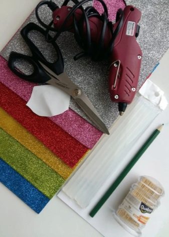 Per treballar amb foamiran purpurina, necessitareu diverses eines i accessoris addicionals. Entre ells es troben: