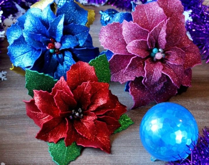 Els temes vegetals són molt populars entre els amants de l'artesania del foamiran purpurina. Així doncs, amb purpurina es pot crear una flor com la poinsettia vermella, una planta amb fulles grans en una olla, un ram de flors, etc.