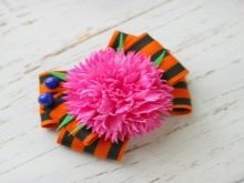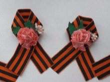 - A les cintes de Sant Jordi els clavells de color rosa (brillants o delicats) també tenen un aspecte molt bonic. Per obtenir aquestes flors tan boniques, podeu utilitzar no solament una cinta ordinària, sinó també un fermall en miniatura elaborat.