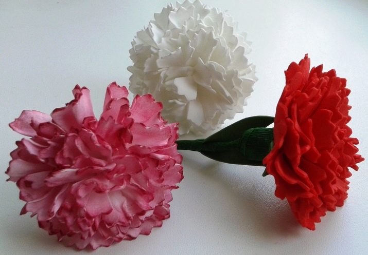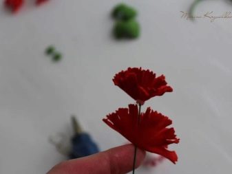 - A partir de clavells de diferents colors (no necessàriament el vermell, el porpra o el rosa, per exemple), s’obté un topic elegant. Al mateix temps, la part central dels brots florals es pot decorar addicionalment amb perles o bonics còdols brillants.
