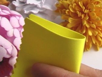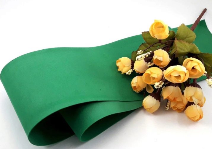 També el material té una superfície suau i vellutat que és agradable de tocar. Avui, el foamiran es troba a la venda, presentat en forma de fulles fines i sedoses. Es caracteritza per una estructura lleugerament porosa. El material en qüestió està elaborat amb matèries primeres de goma espumada.