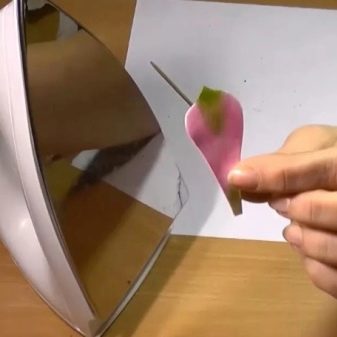 - Per donar al foamiran la forma desitjada, podeu utilitzar no només el ferro, sinó també la flama d’una espelma encesa. El més important és seguir les mesures de seguretat i exercir precaució.