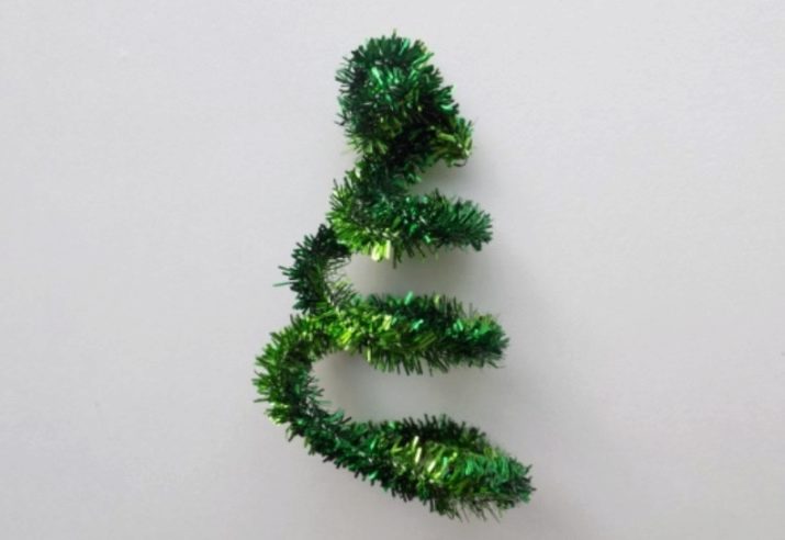La decoració nadalenca també es pot crear amb l'afegit de l'origen. En aquest cas, el tronc necessitarà una longitud de filferro que correspondrà a l’alçada de l’artesania, i per a cada parell de branques, més d’1-1,5 centímetres. Primer, cada fil de coure va “vestit” amb llauna, alentint el lliscament i, després, les branques s’enrotllen al tronc amb una o dues voltes o gairebé “completament”.