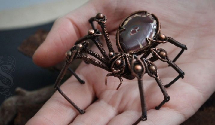 Una aranya filferro es crea de manera senzilla: Per fer-ho, prepareu 8 fils metàl·lics de la mateixa mida i 2 perles. És important que tots els materials tinguin un color similar. Els fils es posen en un dels cables de manera que es deixi una distància mínima entre ells. Les restants peces de filferro es lliguen en aquest punt i es dobleguen per formar potes.