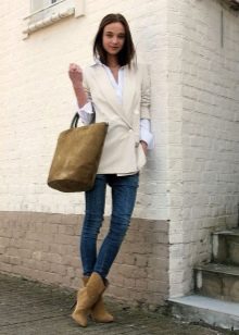 - Pel que fa a les combinacions amb roba exterior, les botes curtes no requereixen res específic. Les botes de turmell aniran bé amb un abric llarg i una jaqueta d'hivern escurçada i lleugera.
