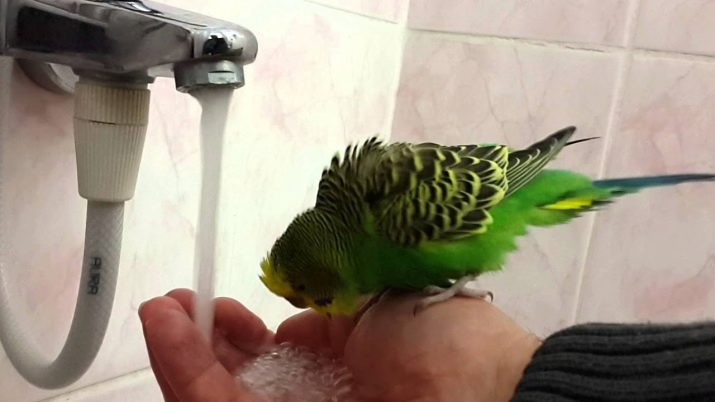 Podeu posar un lloro a la mà i portar-lo a un raig d’aigua, que surti tranquil·lament des d’un aixeta oberta. Podeu posar l’onada a l’espatlla, anar a rentar-vos les mans i subjectar-les especialment sota un corrent d’aigua, fregant-lo amb calma. Alguns "atrevits" es salten a l'aigüera i comencen a jugar amb un truc. L’amo d’aquest ocell és molt afortunat: no l’acostumar a l’aigua no és difícil.