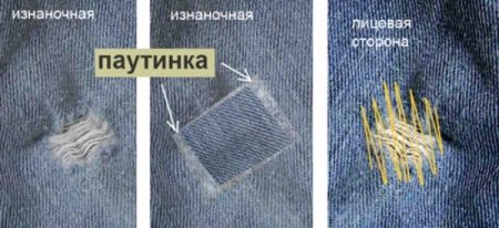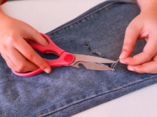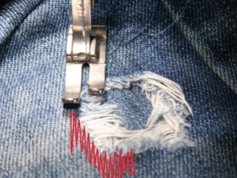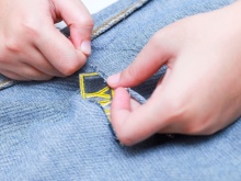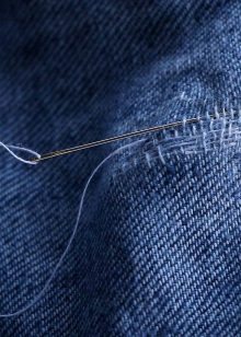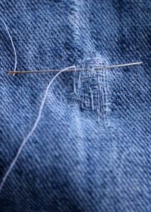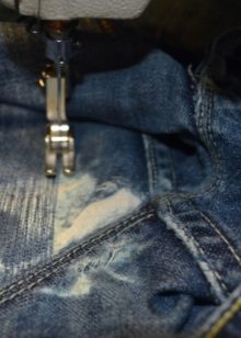 Podeu cosir manualment un forat que sembla un angle recte o un tall en forma de línia recta. Els fils utilitzats han de coincidir amb el to dels texans, és a dir, ser invisibles.