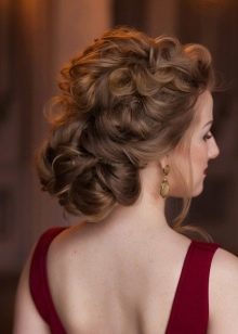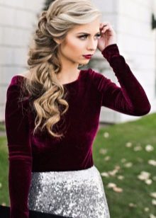 Demanem-nos d’un estil més espectacular i alhora senzill que es pot dominar a casa. Farem una reserva de seguida, si no teniu experiència a la creació de pentinats complexos a casa, és millor elaborar un parell de setmanes abans de la festa corporativa i assegurar-vos que el resultat dels vostres esforços és exactament el que volíeu.