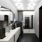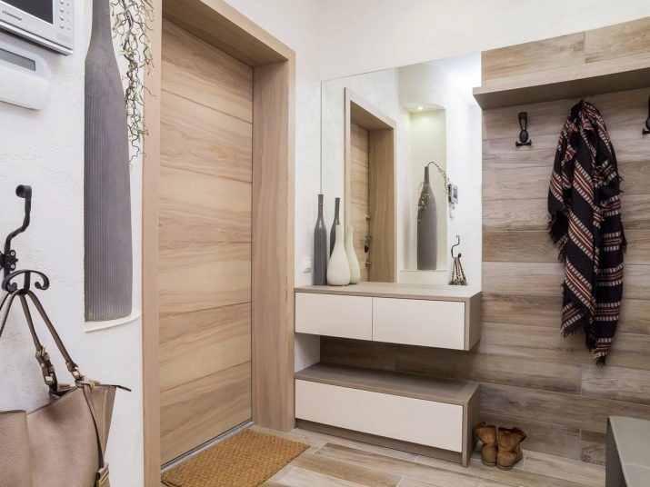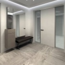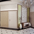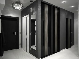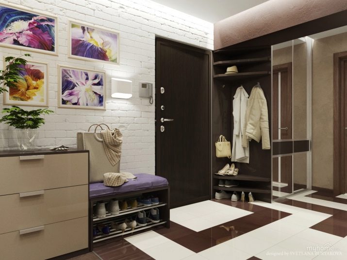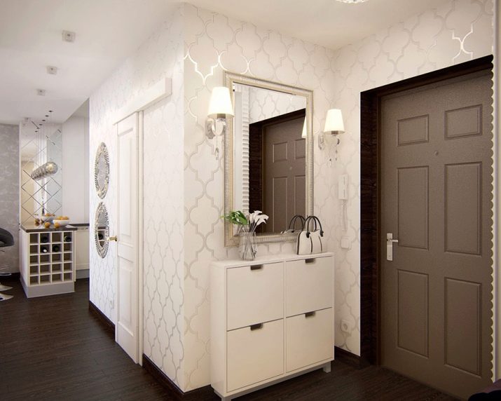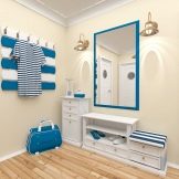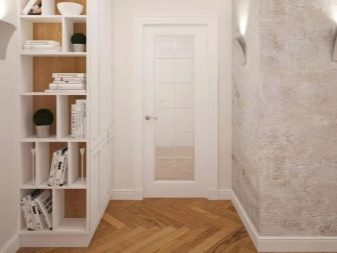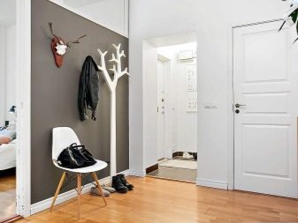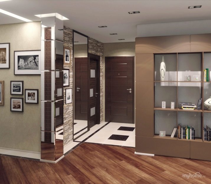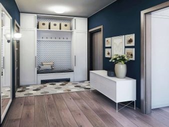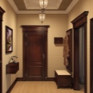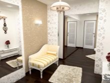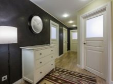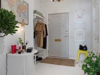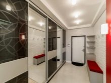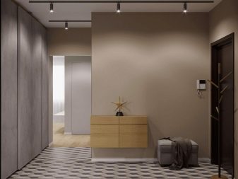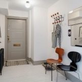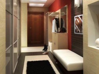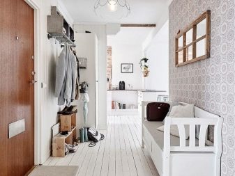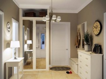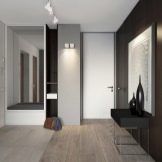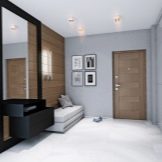 El passadís de mida mitjana també té diverses opcions d’espai. Hi podreu posar un armari massiu, calaixos, banquets i quedarà completament buit. Però si voleu que el passadís sigui lleuger, ampli i ordenat, aleshores aquí podreu dedicar-vos a la decoració amb colors clars i minimalisme en l'elecció dels mobles. També passa que l’apartament té un vestíbul d’entrada relativament gran, però no les habitacions més àmplies.