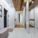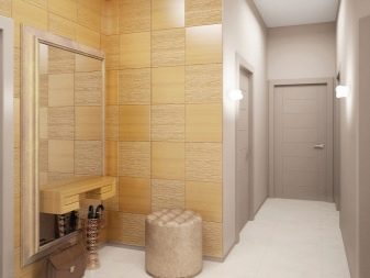 - Passadís lluminós amb laminat a la paret i una geometricitat clara. Una bona opció per a una habitació petita amb poca il·luminació.