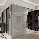 - Valent i fresc. L’espai està dividit en un rebedor i un passadís, l’acabat decoratiu de la paret del rebedor fa ressò de la pedra de vorera del passadís. No sombríc, ni apagat, lliure i airejat en una habitació així.