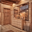 - Xalet Aquí hi regeixen materials naturals i acabats deliberadament rugosos. Tot és brutal, una mica ascètic, però, a causa de la decoració subtil i fragmentada, serà una autèntica elecció d'un "den" suburbà.