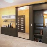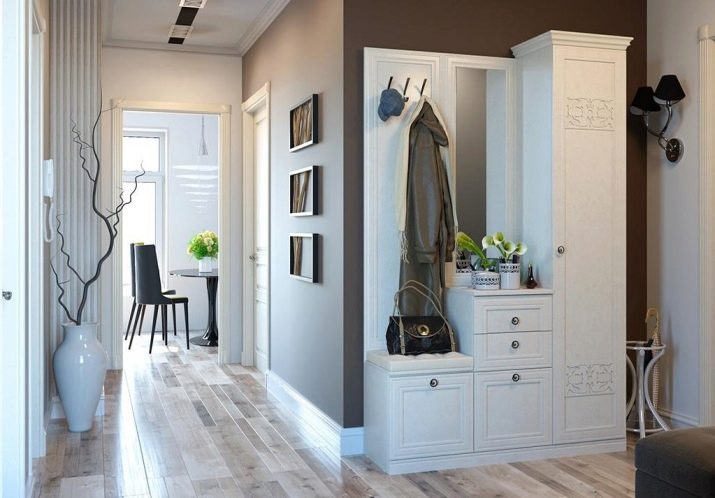 - Omplint un petit passadís amb mobles, val la pena abandonar tot allò que sigui superflu, d’objectes massius i voluminosos. Els abrics de pell i les jaquetes que no es porten cada dia i cada temporada s’han de guardar a un vestidor comú o a un gran armari.