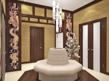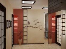 Una altra opció per a aquells que busquen un gir és l’estil japonès.. Genkan suggereix formes estrictes, però alhora acollidores - armaris per a sabates, així com la decoració que les decora - ceràmica, pintures, flors.