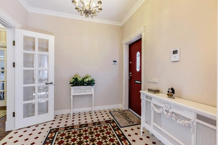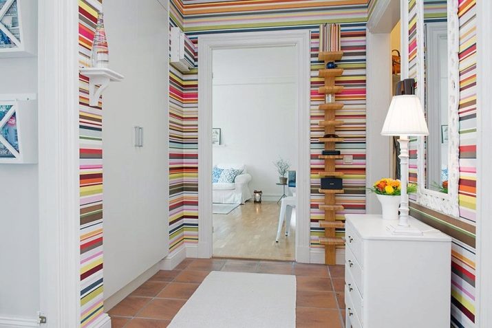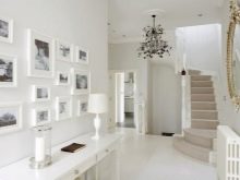 - A ratlles elegants - aquest passadís recorda l’estiu, la frescor, el sol a l’aire. Ella anul·la la idea que el passadís, en la majoria dels casos, és un lloc ombrívol, no el més còmode de la casa. El color blanc de la decoració no permet que les parets embrutades esdevinguin irritants, la decoració restringida i l’absència d’excés en el disseny distreuen l’atenció de la mida realment petita de l’habitació.