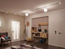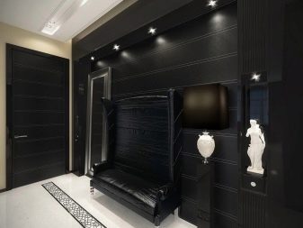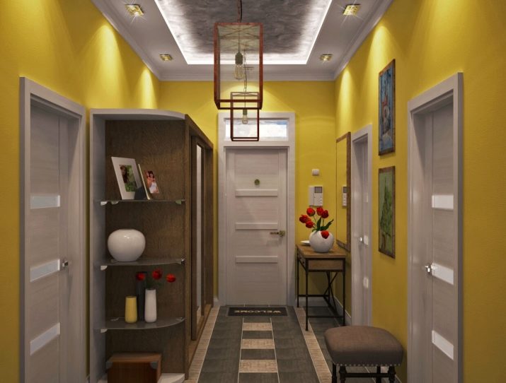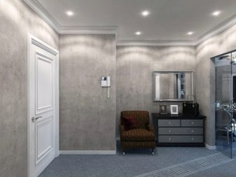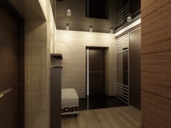 - espots i focus - és modern, un candelabre al passadís és una opció obsoleta per a les habitacions petites;