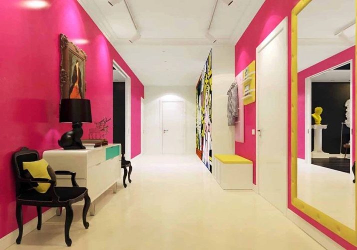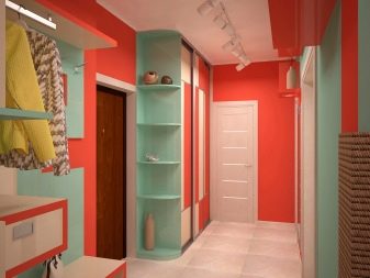 Sembla que tot és senzill aquí: en un petit passadís només hi pot haver colors clars a la decoració. I en general, l’aspecte fosc d’aquesta zona és poc freqüent. Però, malauradament, sovint els propietaris restringeixen molt les possibilitats d’escollir el disseny del color d’aquesta “habitació”. Però presenta l’apartament, constitueix la primera impressió d’ella. I podeu apartar de decisions frenades, poc ambicioses, tenint en compte alguna cosa més atrevit, elegant i alegre.