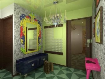 Trobeu l’oportunitat d’organitzar un seient al passadís, busqueu un lloc per a un gran mirall. I en general considera la somnolència com la idea principal de la decoració de l’habitació: a l’interior modern hi ha un lloc per al color, l’humor i els contrastos.