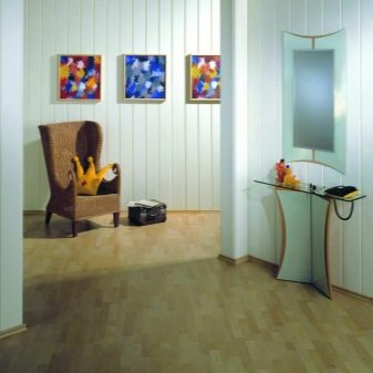 - Terra laminada. Això no és un error, avui el laminat participa activament en la decoració de la paret. Però decorar totes les parets amb un laminat és una idea dubtosa, però destacar la paret o fragment central és un projecte força interessant.