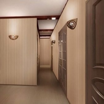 - Panells de plàstic. No és suficient la cordialitat ambiental en un acabat, però és una opció força popular. De baix preu, de disseny variat, fàcil d’instal·lar, adequat per a la neteja en humit, per això s’encanten els panells de plàstic. Però, al mateix temps, el material es crema sota la llum del sol, no és el més durador.