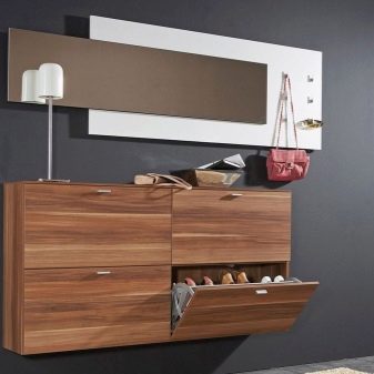 - Rebuig del que no per a les sabates. A alguns sembla que amagar les sabates en un armari és la millor solució, però gairebé sempre està condemnat al fracàs. Les sabates es rebaixaran de forma aleatòria i el prestatge de les sabates proporciona ordre a l’espai del passadís.
