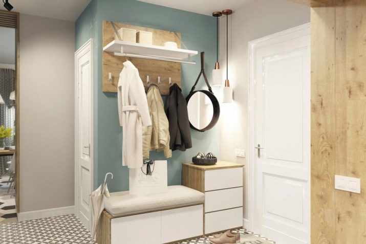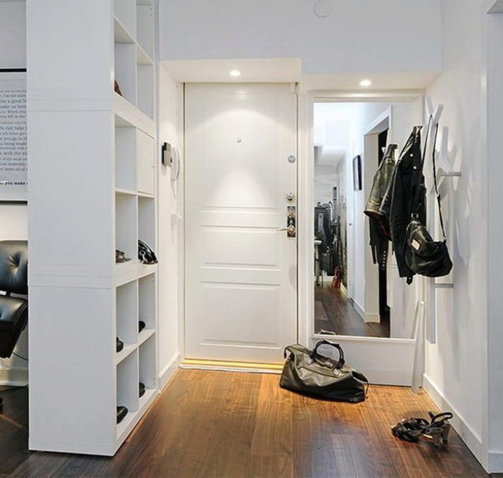 - Fins i tot un petit passadís es pot dividir condicionalment en dues zones: el passadís mateix i el rebedor. Això es fa de manera que el lloc on es reunirà no es desplaci cap a la sala. Entreu, traieu-vos la roba exterior, asseieu-vos i traieu-vos les sabates, poseu-vos la bossa, tot això hauria d’estar a la zona del passadís.