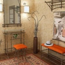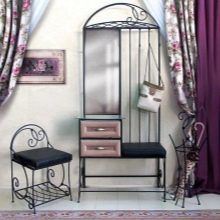 L’estil és molt popular ara. cutre chic. El mobiliari forjat és una de les principals condicions per a la seva realització. Un passadís decorat en aquest estil hauria d’estar en sintonia amb altres habitacions i l’estil general de l’habitatge. És fàcil resoldre aquest problema - n’hi haurà prou amb disposar d’elements forjats també en altres habitacions.