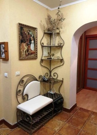 La forja d’art és apreciada entre els dissenyadors d’interiors. Aquesta tècnica s’utilitza per crear diversos mobles que s’ajusten orgànicament a l’interior del passadís. L’ús de mobles forjats en el disseny de l’habitació permet donar a l’interior lleugeresa, confort i sofisticació.