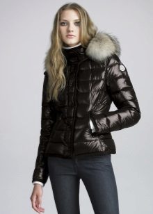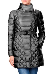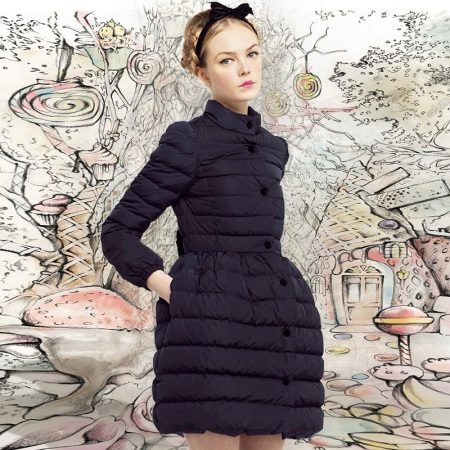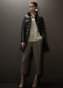 3. Afegiu una jaqueta de grafit profund amb una silueta ajustada. La part inferior de la jaqueta baixa és una falda acampanada; un estil tan inusual us permetrà romandre femení i elegant fins i tot en roba d'hivern càlida.