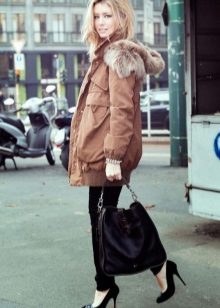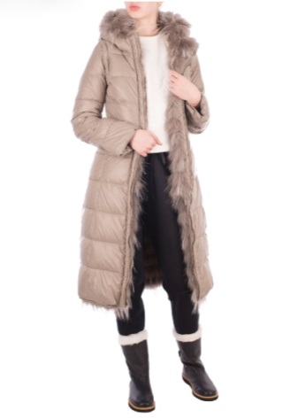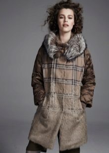 1. Abric Violanti beige amb detalls de pèl clar. La particularitat d’aquest model és que es pot portar de diferents maneres: amb la pell dins o cap a fora. Per tant, una jaqueta baixa és adequada fins i tot per a temps molt freds.