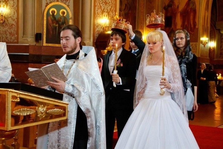 Alguns recent casats van a l'església després de l'oficina de registre. La cerimònia del casament us permet rebre una benedicció per a la vostra futura vida familiar. L’església té les seves pròpies regles, que no tenen res a veure amb el dret de la família. S’han de requerir testimonis de casament. Aquestes persones donen suport a la núvia, mantenen corones sobre el cap.