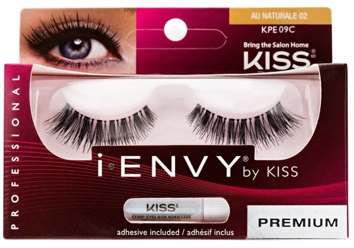 - Companyia nord-americana falses pestanyes Kiss I Envy Premium posicionat com el millor de la categoria premium. Les matèries primeres per a la producció són els cabells naturals que han estat objecte d’un tractament tèrmic especial. L’accessori està pensat per a un ús repetit amb un ús i cura adequats. El cabell es combina amb èxit amb les pròpies pestanyes. El kit disposa de cola d’alta qualitat.