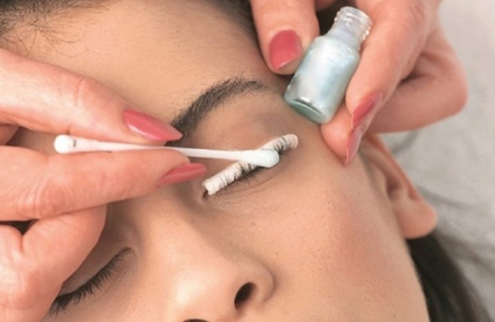 - Aplicació de solució suavitzant. Cal assegurar-se que el producte no cau sobre la zona basal i directament als ulls, ja que pot provocar irritació de la mucosa. Els esteticistes també aconsellen no tocar les puntes de les pestanyes. El medicament s’ha de mantenir als pèls durant no més de 15 minuts, i després treure els seus residus amb un cotó.