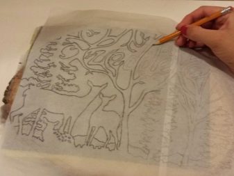 - Es canvia l’esbós durant la transferència? No importa. Cau per sota peça de goma o mató de fustai la imatge serà exacta i exacta. És en aquest moment que heu de considerar la ubicació de les peces i objectes principals, prestant especial atenció a la composició.