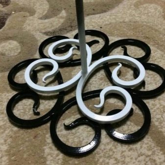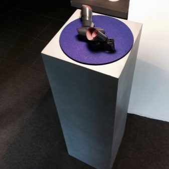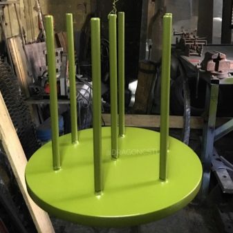 També podeu trobar dissenys combinats. Per exemple: metall-formigó per a una major ponderació. Sempre que trieu un suport, heu de tenir en compte el pes i l’alçada dels colors.
