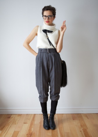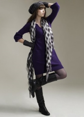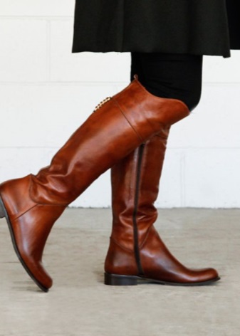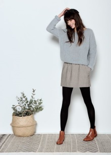 - Les botes de fons pla amb les potes altes, combinades amb una minifaldilla aïllada, un jersei brillant o un poncho brillant, formen un aspecte alegre i elegant d'una jove. Les sabates han de triar el vermell o el marró. El més important és combinar amb un poncho. Els guants de pell, una petita bossa de mà i un barret de fedora han de triar com a complements.