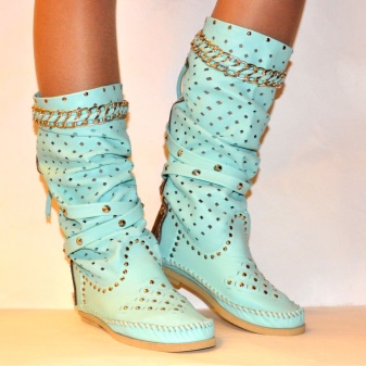 L’estiu és un moment en què les nenes tenen l’oportunitat de mostrar-se amb tota la seva glòria, i les botes les ajuden en això. Les botes d’estiu actuen com a sandàlies, de manera que les podeu portar a qualsevol lloc, ja sigui un passeig al jardí o un viatge a una cafeteria. Si voleu posar-vos botes de feina, atureu-vos a la versió tancada, però amb el dit obert. Per a una festa, és adequat un taló alt.