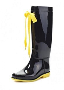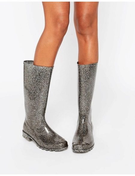 Les botes de goma a la moda poden tenir diferents versions de la sola. El pis tradicional és molt pràctic. Per a noies d’estatura curta, és adequada una plataforma alta. Solució elegant: opcions de falca. Els models alts de cautxú amb taló, que poden ser força alts, tenen un aspecte impressionant.