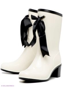 Els llaços, les pedreres, les cintes de setí, les cadenes i les sivelles metàl·liques massives també apareixen sovint com a decoració de les botes de goma per a dones. Alguns productes semblen molt glamurosos. També hi ha opcions fantàstiques per a joves: bàsicament aquest efecte es deu a un imprès peculiar (motius de fruita i baies o, per exemple, cranis).