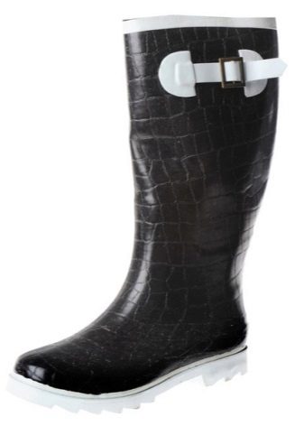 L'assortiment de botes de goma de la marca té moltes solucions interessants, una de les àrees de moda és la imitació de la pell del rèptil. A més, les botes altes llises amb cremallera, decorades amb detalls decoratius, tenen un aspecte elegant.
