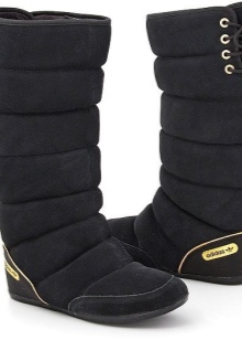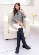 Els models càlids es veuran excel·lents, amb polaines i polaines aïllats. La combinació d’objectes negres amb botes blanques o beies sembla especialment brillant i atractiva. La roba fosca adequada emfatitzarà les esveltes cames femenines. Els fashionistes complets haurien de rebutjar una combinació de roba i sabates, ja que pot destacar els defectes de la figura.