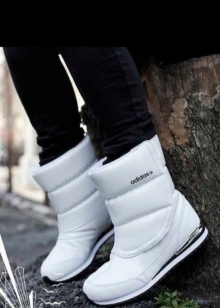 Les botes d’hivern d’Adidas d’alta qualitat presenten un revestiment càlid de llana, esponja o sintepon. Els models aïllats tenen una sola sola en relleu que protegeix contra les superfícies fredes i relliscoses. Són molt populars els models inflats amb un acabat brillant impermeable a l'aigua. Les sabates es poden complementar amb cordons o velcro còmode.