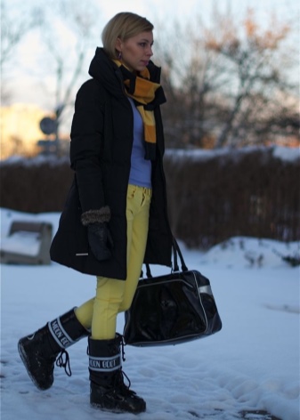 Les sabatilles esportives d’hivern es veuran excel·lents amb jaquetes clàssiques i parques de moda. La combinació de dutiks i jaquetes brillants amb una textura similar sembla especialment impressionant. Si voleu subratllar una figura esvelta, llavors amb botes podeu posar-vos un abric o mantó càlid. Amb models esportius, podeu portar abrics de pell i armilles curtes i mitjanes.