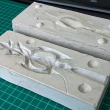 - és necessari crear un motlle per colar el producte; cal combinar 1 part de guix i 7 parts de sorra, afegir una mica d’aigua perquè la massa adquireixi la consistència de la crema agria espessa; s'aboca la composició preparada en un recipient separat, després s'agafa un objecte que es necessita, es lubrica amb sabó i es baixa en una barreja de guix no brindada, esperant fins que la massa comenci a endurir-se;