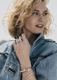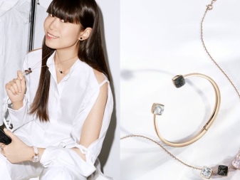 El model és adequat per a estils de negocis i de nit. Durant diversos anys, aquest model continua sent un dels més populars de la col·lecció Swarovski. Podeu triar un model arc de Sant Martí de color sòlid o transparent. Però fins i tot aquí, els estilistes presten atenció al fet que cal combinar accessoris amb la seva imatge.