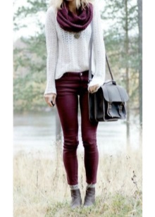 A causa de l’abundància de tons, el mocador burgundy s’adapta de manera molt harmònica a qualsevol imatge i estil: brillant i moderna, assequible, clàssic, el principal és triar l’estil adequat. Perquè la combinació sigui perfecta, confia en el model i la textura de la bufanda.